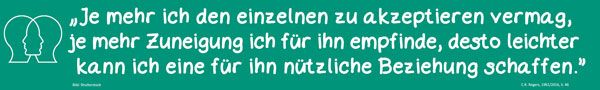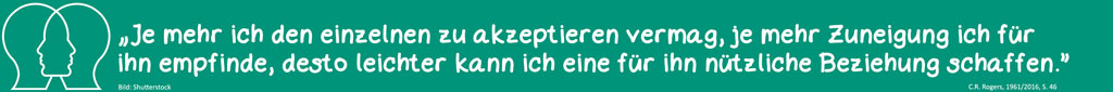 Der Personzentrierte Ansatz geht auf Carl R. Rogers (1902–1987) und seine Mitarbeiter*innen zurück und findet in vielen unterschiedlichen Feldern Anwendung – zum Beispiel in Psychotherapie, Beratung, Medizin, Sozialarbeit und Erziehung. Der Personzentrierte Ansatz geht davon aus, dass jeder Mensch in einem ständigen Veränderungsprozess steht und die Fähigkeit besitzt, sich konstruktiv zu entwickeln und eigenverantwortlich zu entscheiden. Dieser psychische Wachstumsprozess vollzieht sich in und durch Beziehungen zur Mitwelt. In ihm entfaltet die Person ihre Fähigkeiten, gewinnt Vertrauen zu sich selbst, nimmt Bewertungen selbstverantwortlich vor, wird zunehmend offen für Erfahrungen und Veränderungen und gestaltet ihre Beziehungen befriedigend. Die selbstkritische Auseinandersetzung mit eigenen Einstellungen und Gefühlen ermöglicht flexible und der Erfahrung entsprechende Sichtweisen auf sich selbst und andere.